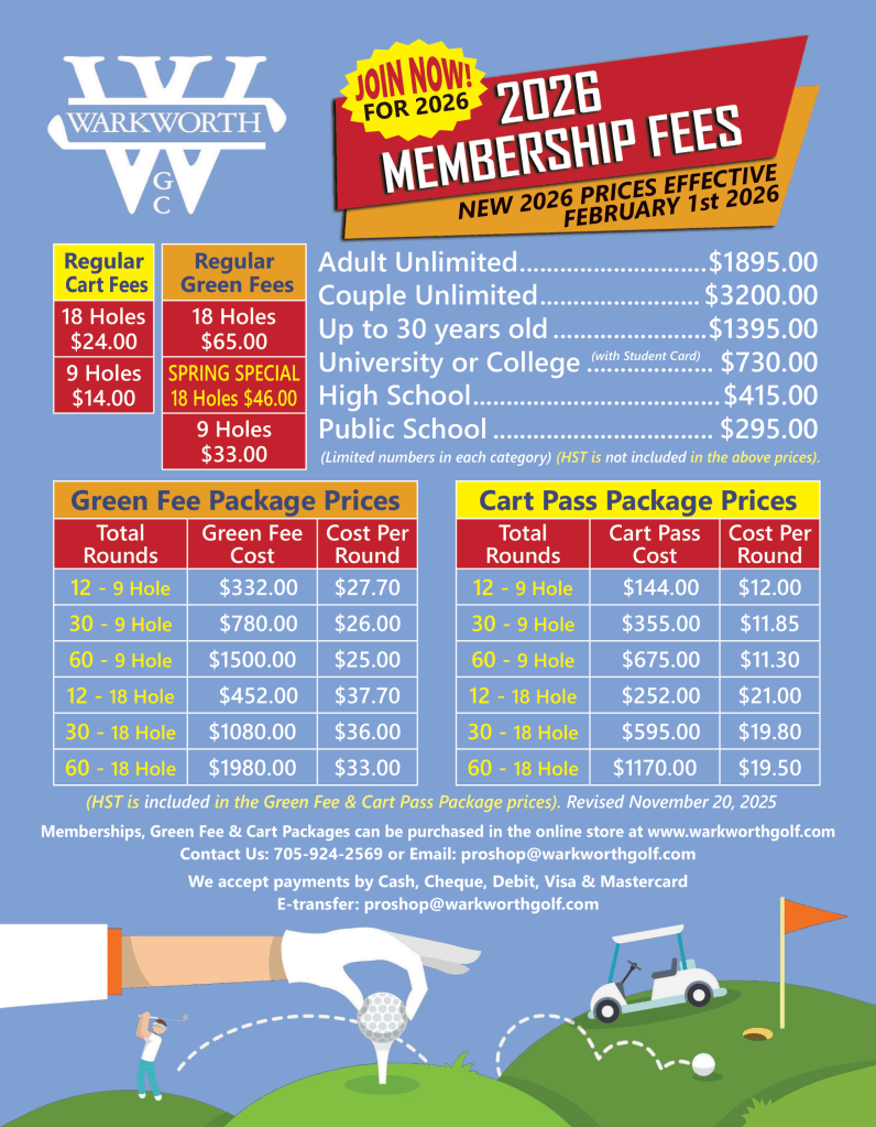 Warkworth Golf Club offers  membership options that suits your budget.  Our challenging course and friendly staff ensures our members & guests will enjoy their day at the club.